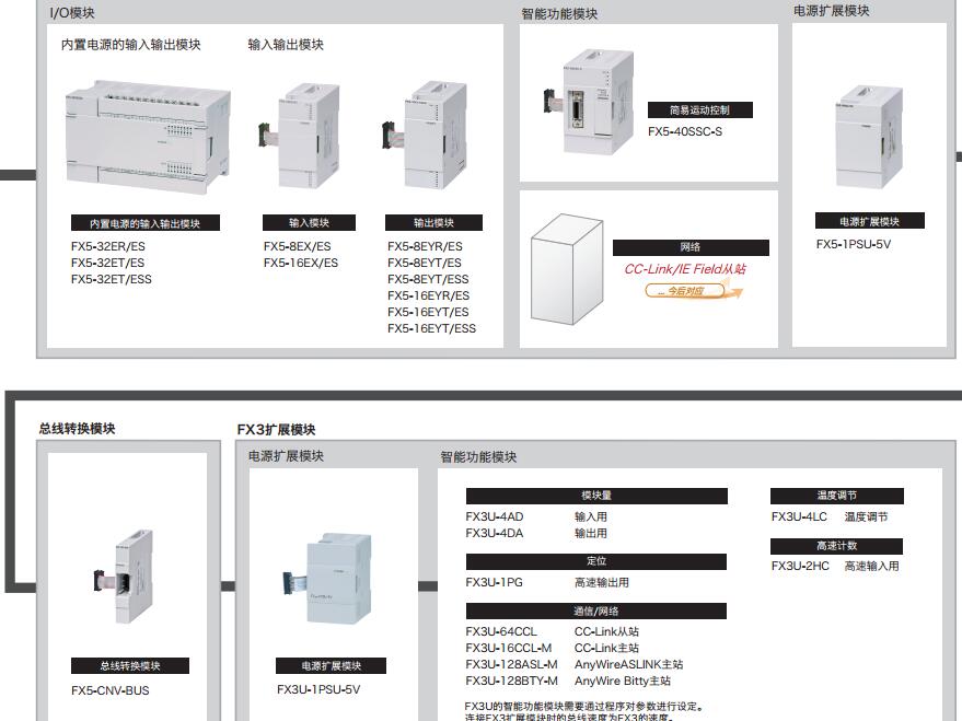The series PLC can not be brought with the expansion module, but can be installed by the BBD board to extend a small amount of I/O FX5-CNV-BUSC.